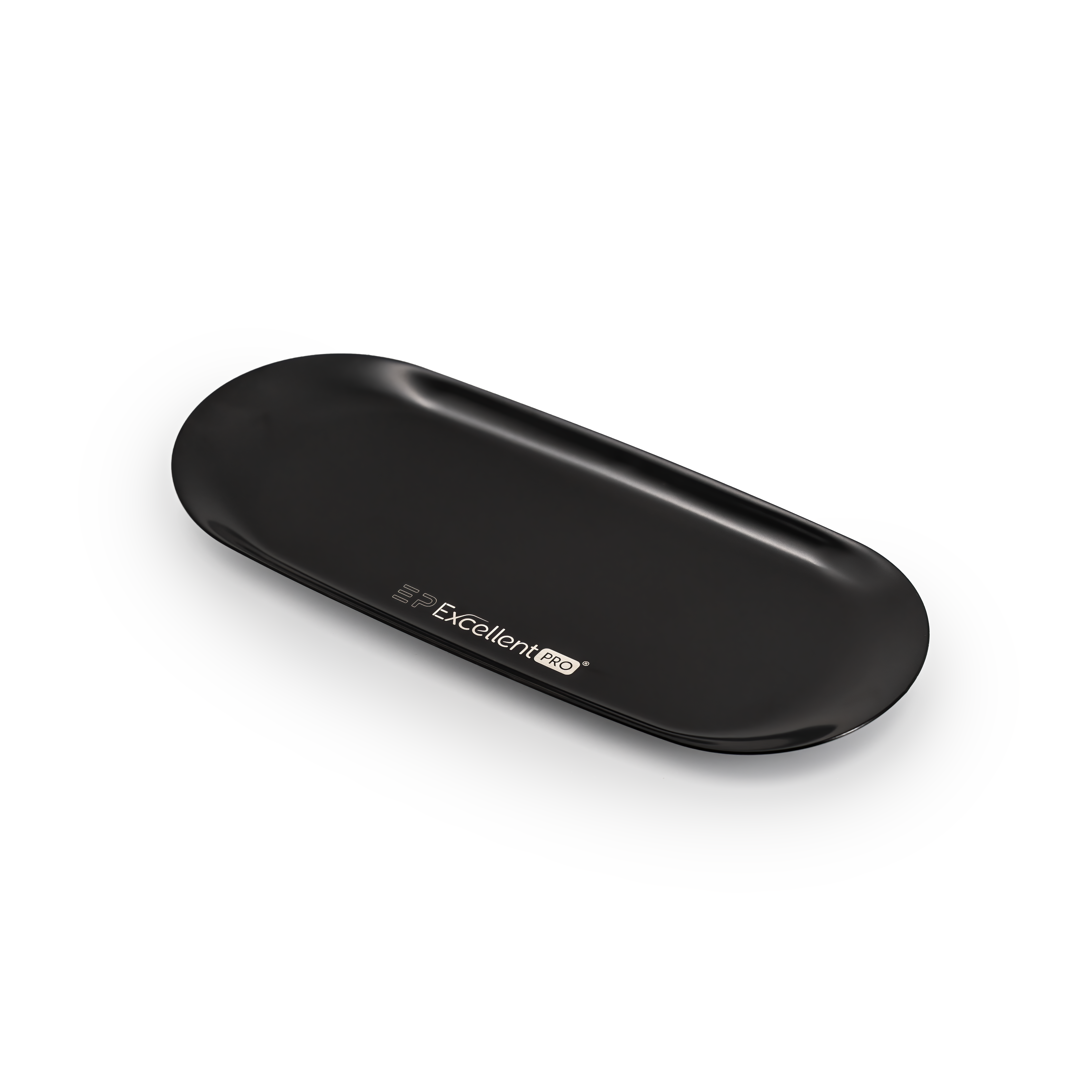 EXCELLENT PRO CZARNA TACKA NA NARZĘDZIA KOSMETYCZNE – tacka na potrzebne narzędzia i akcesoria do wykonywania manicure oraz pedicure w kolorze czarnym. Odpowiedni rozmiar oraz wyprofilowane boki pozwolą na doskonałą organizację i porządek na stanowisku pracy. Produkt ten został wykonany ze stali nierdzewnej, co pozwala na łatwe czyszczenie oraz dezynfekcję a także zapewni trwałość oraz odporność na korozję. Doskonale sprawdzi się również jako elegancki dodatek do salonu.